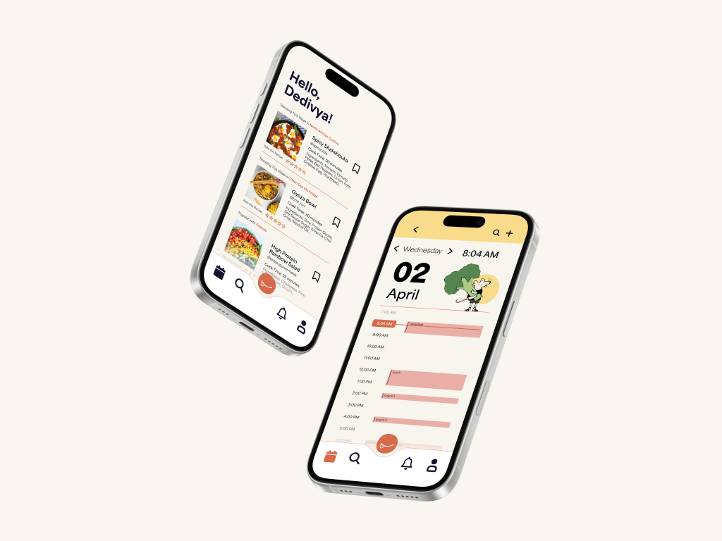 My first deliverable was a mobile app. This functioned as a hub for users to share and discover recipes, plan out their day, and see what their friends are up to.