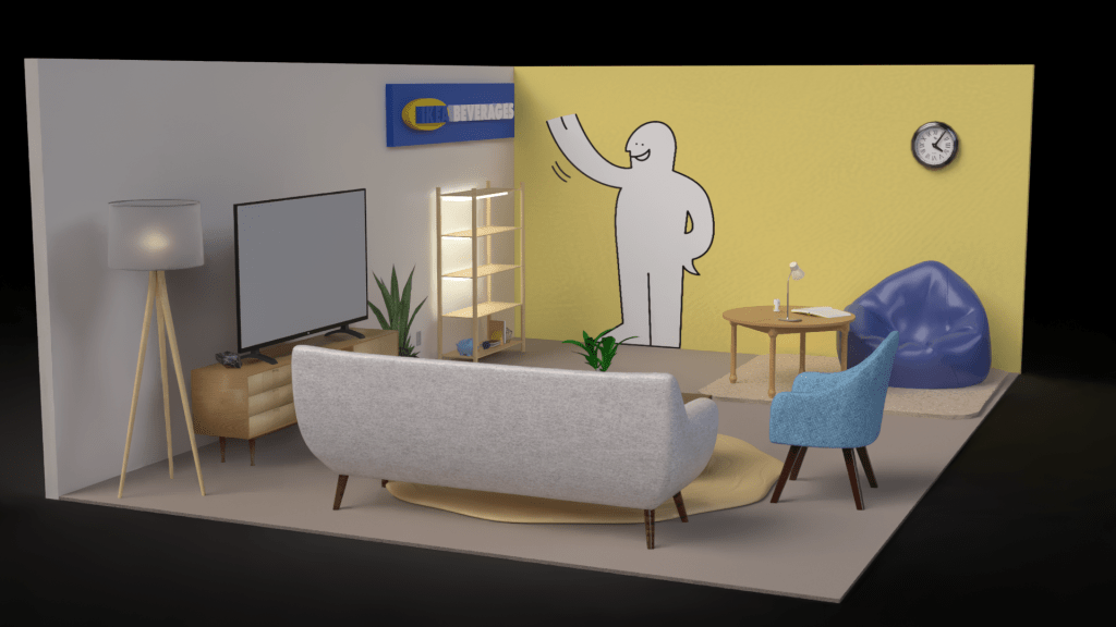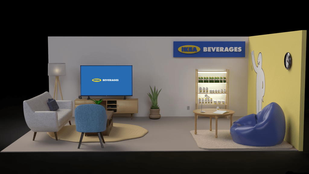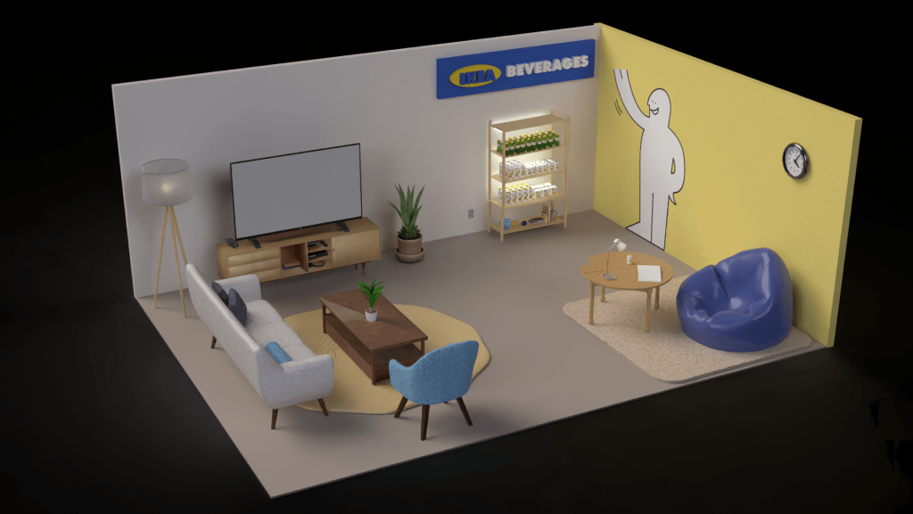 Next, we created a Point of Purchase display. I chose to have mine be an IKEA showroom with a display of the drinks in the corner for customers to pick up and purchase.