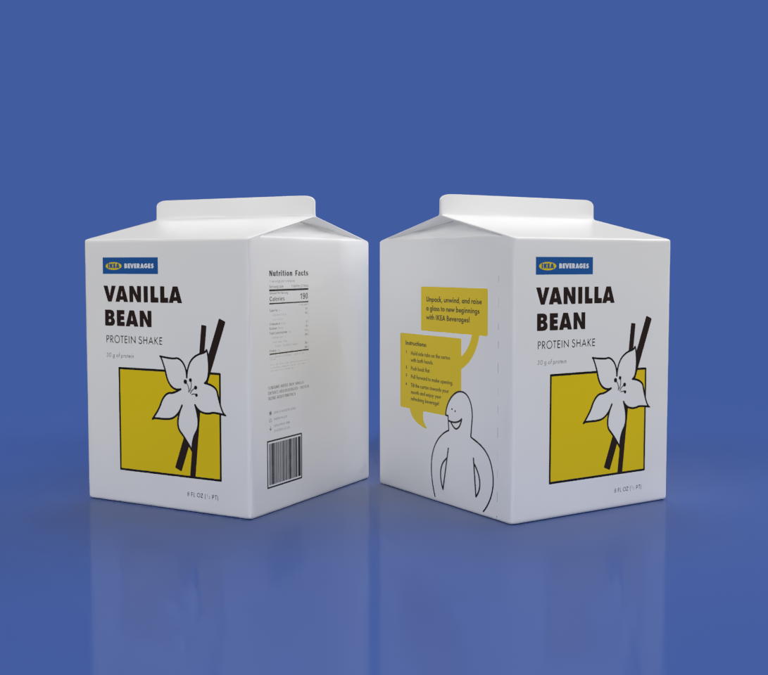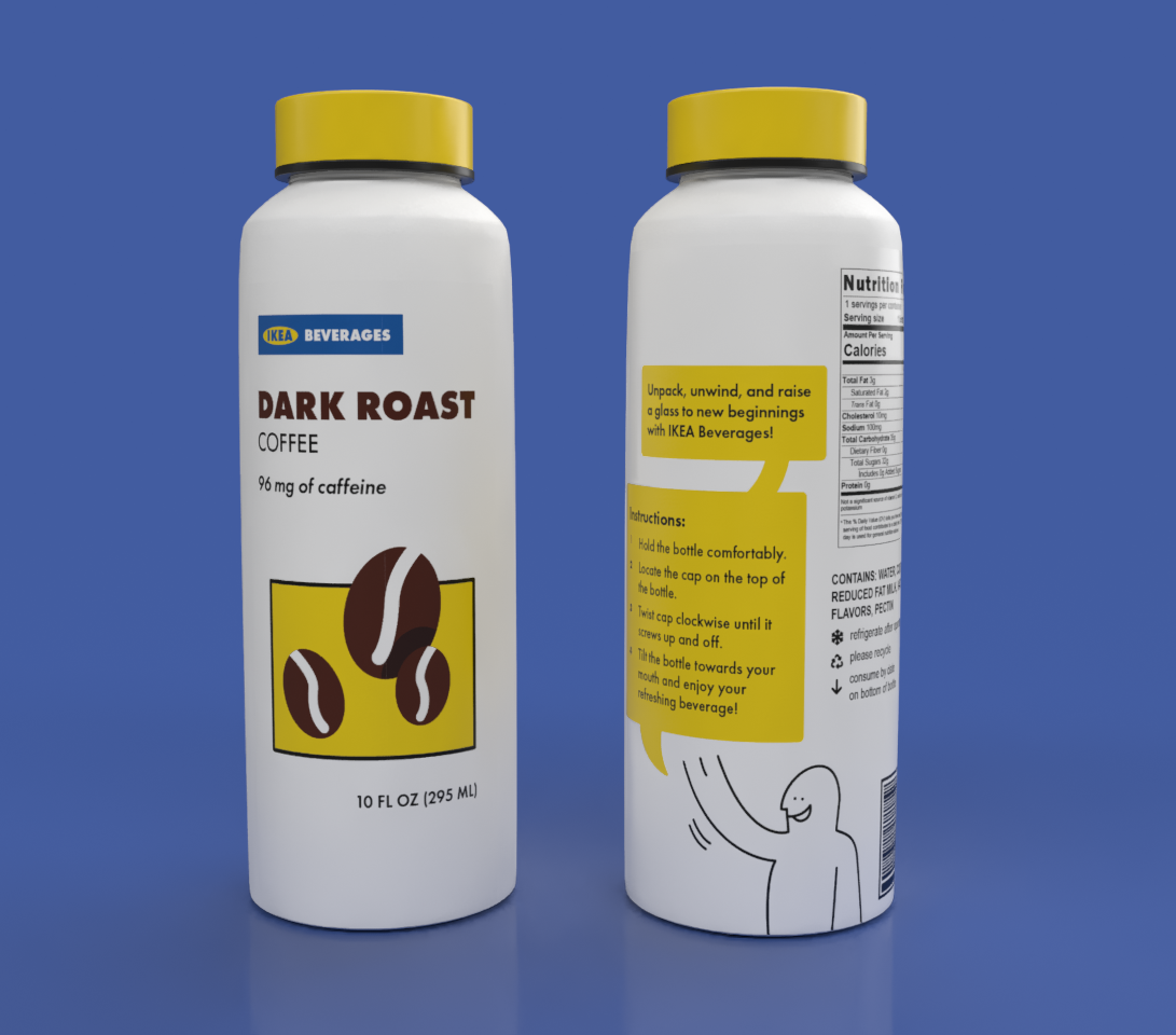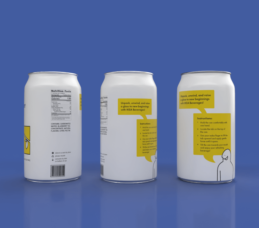In Packaging and Point of Purchase, we were instructed to choose a preexisting brand and design a line of products for them that they don’t already have. I chose to do IKEA Beverages.