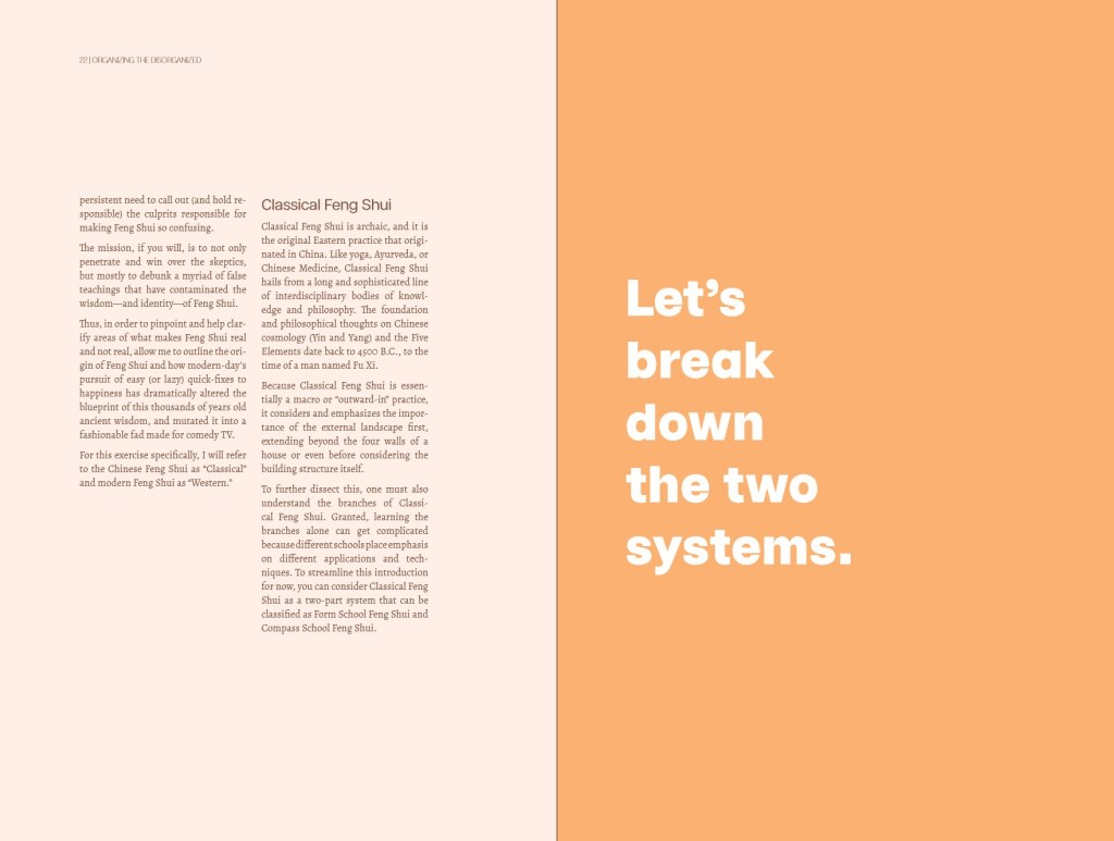 My book Organizing the Disorganized was created with the aim of helping people understand the basics of feng shui as well as how it came to be what it is today.