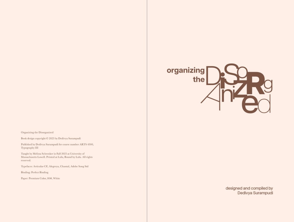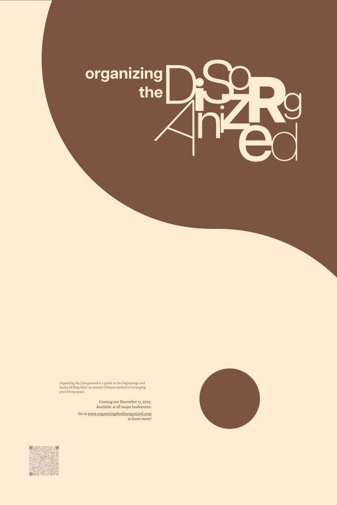 We were then tasked with creating a poster. I chose to create a poster to advertise the release of the book, Organizing the Disorganized. For my poster, I chose a more minimal aesthetic with lots of white space. I brought in some of the elements from my book for visual cohesion. It also includes a QR code which will lead to a hypothetical website.